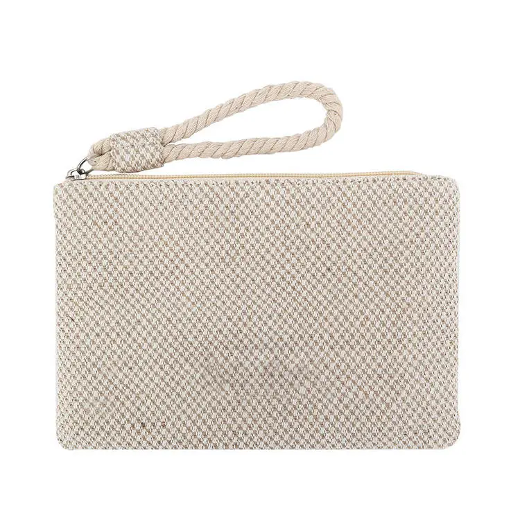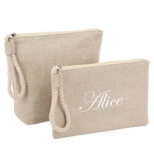 المهنية شعار مخصص الخيش الزينة الحقيبة يشكلون زيبر حقيبة حقيبة مستحضرات التجميل الجوت العضوية