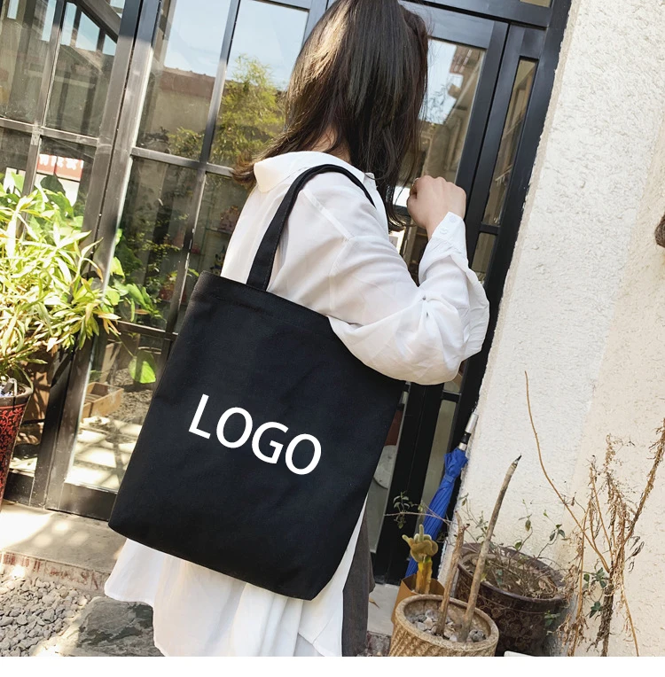 الجملة الجديدة نمط كبير قماش القطن عادي حمل حقيبة تسوق مع شعار مخصص